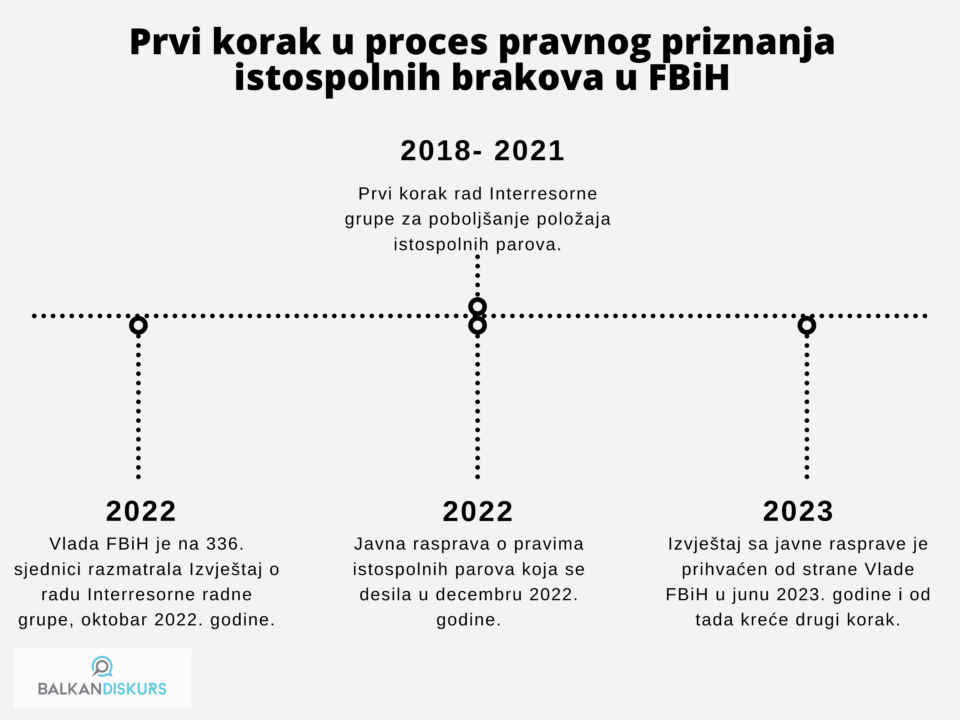 „Prvi korak je podrazumijevao da Interresorna grupa uradi sveobuhvatnu analizu pravnih propisa i njihov utjecaj na istospolne parove, te donošenje zaključaka koji bi obuhvatio preporuke što je potrebno uraditi da bi se poboljšao položaj istospolnih parova u FBiH“, pojasnio je Brković.
